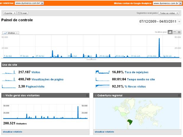 Google Analytics (estatísticas fornecidas pelo GOOGLE, o mais conceituado entre os internautas):