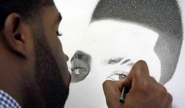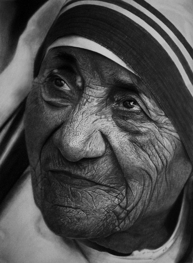 Imortalizando com sua obra nomes como o de madre Tereza de Calcutá, Amy Whinehouse e do rei Roussein da Jordânia, capturando meticulosamente cada detalhe usando apenas um lápis, papel e um pedaço de carvão, Kelvin gasta em média 80 a 100 horas em cada retrato