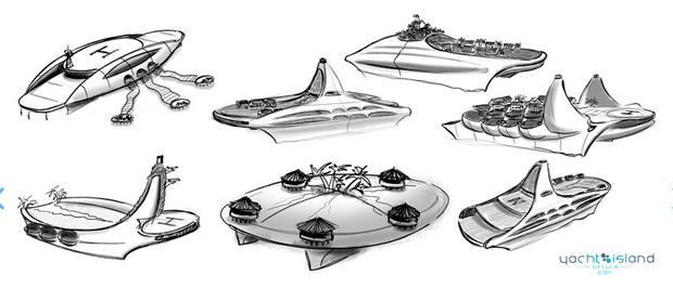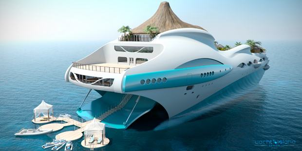 O intuito era criar uma maravilhosa ilha flutuante, com todas as características de uma ilha tropical, como montanha e cachoeira por exemplo, incorporadas ao design de um iate.