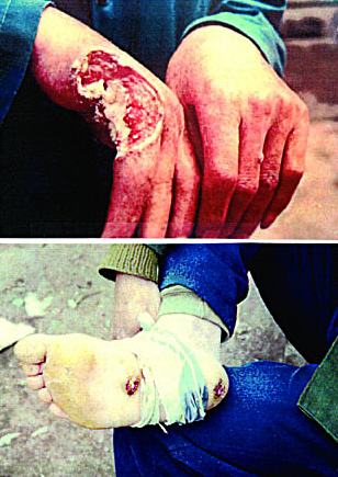 • ulcerações terríveis na pele;